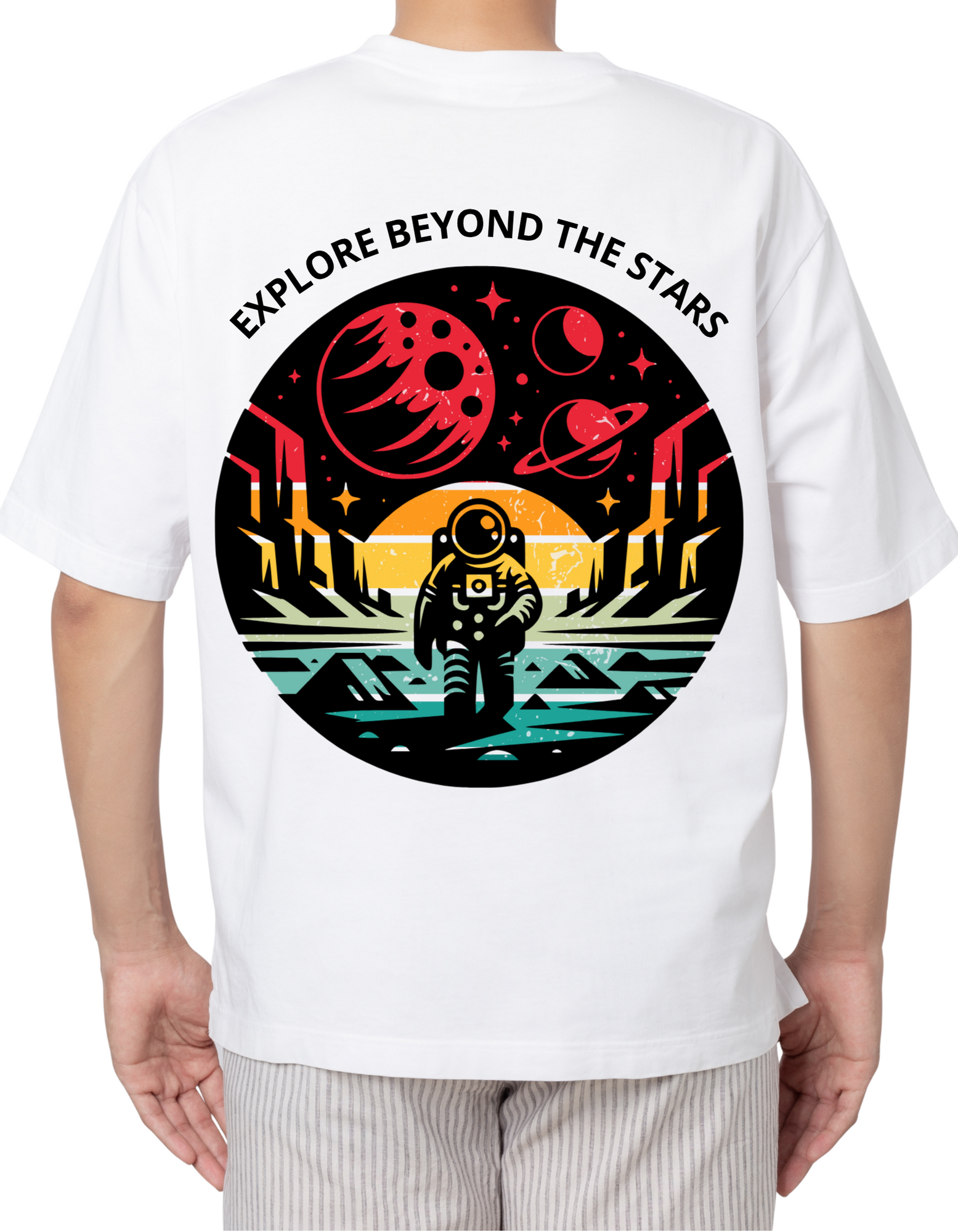 Step into the cosmos with our White Oversized Astronaut in Space T-Shirt, designed for dreamers and explorers who dare to go beyond limits. Featuring a bold astronaut print floating in space on the back, this heavyweight tee combines minimal front aesthetics with maximum back impact. Crafted from 100% premium 240 GSM bio-washed cotton, it delivers an ultra-soft touch, structured fall, and relaxed oversized fit perfect for everyday wear.